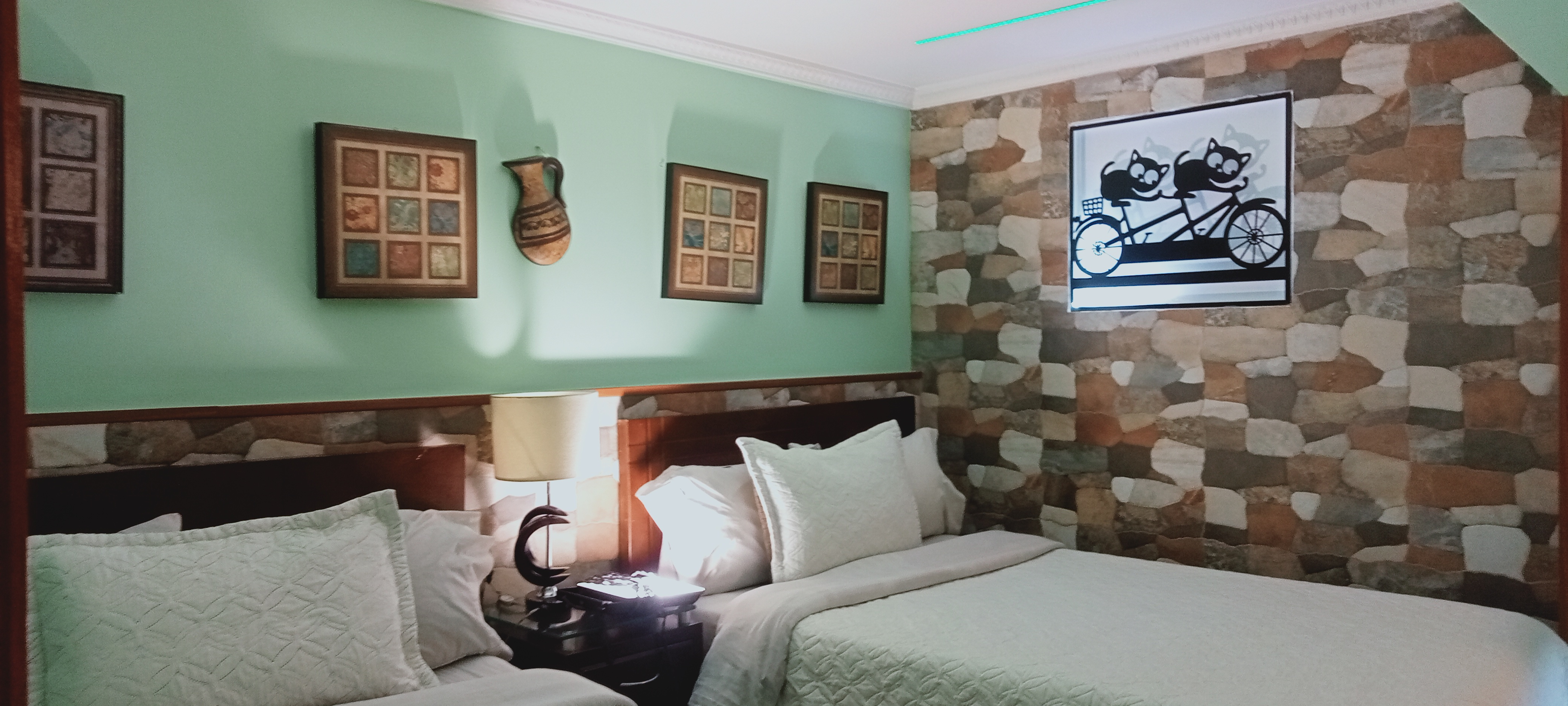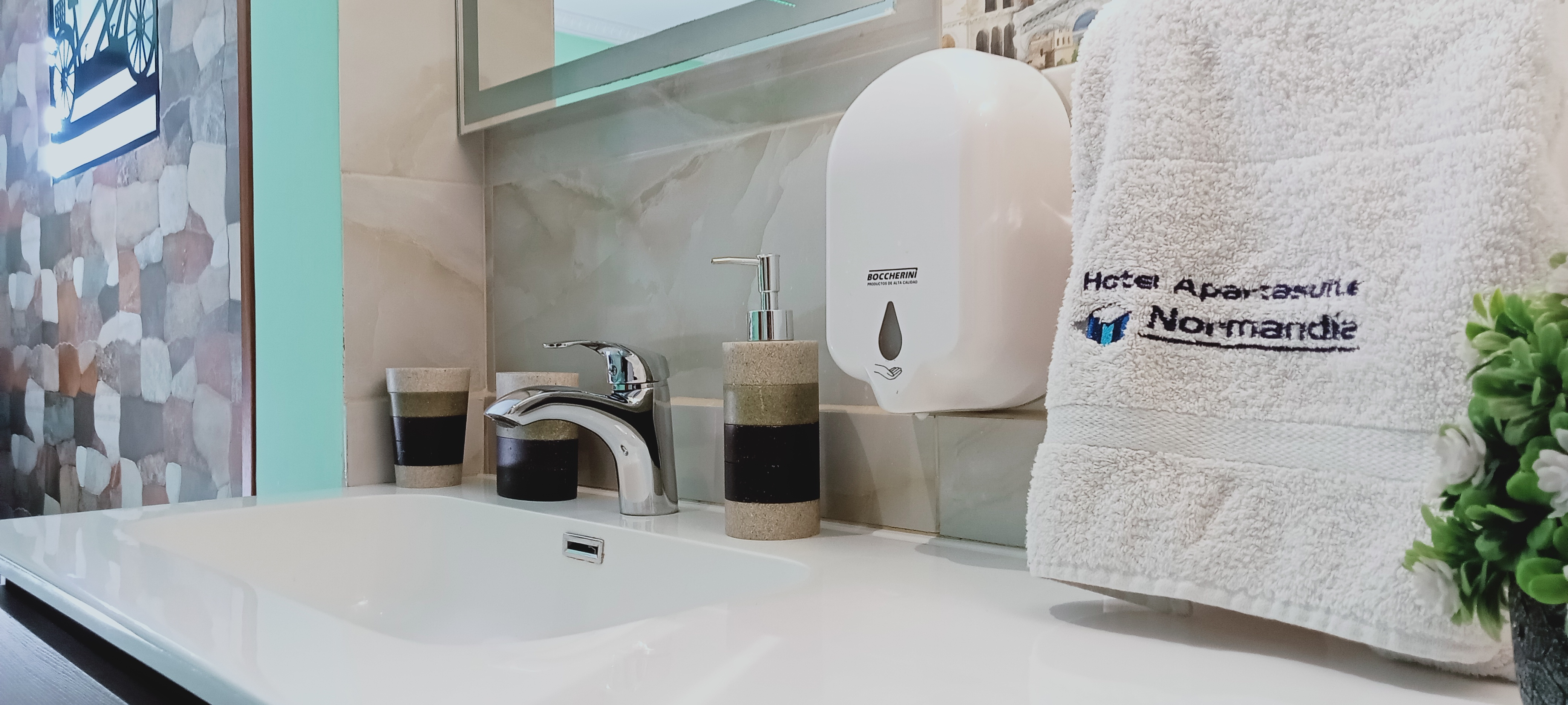 La Suite Familiar Doble del ApartaSuite Normandía es el refugio ideal para familias que buscan comodidad y elegancia en un ambiente acogedor. Esta amplia habitación cuenta con dos camas dobles, cuidadosamente vestidas con ropa de cama de alta calidad para garantizar un descanso reparador. Las camas están dispuestas de manera que permiten un fácil acceso y circulación por la habitación, sin sacrificar el espacio y la funcionalidad.